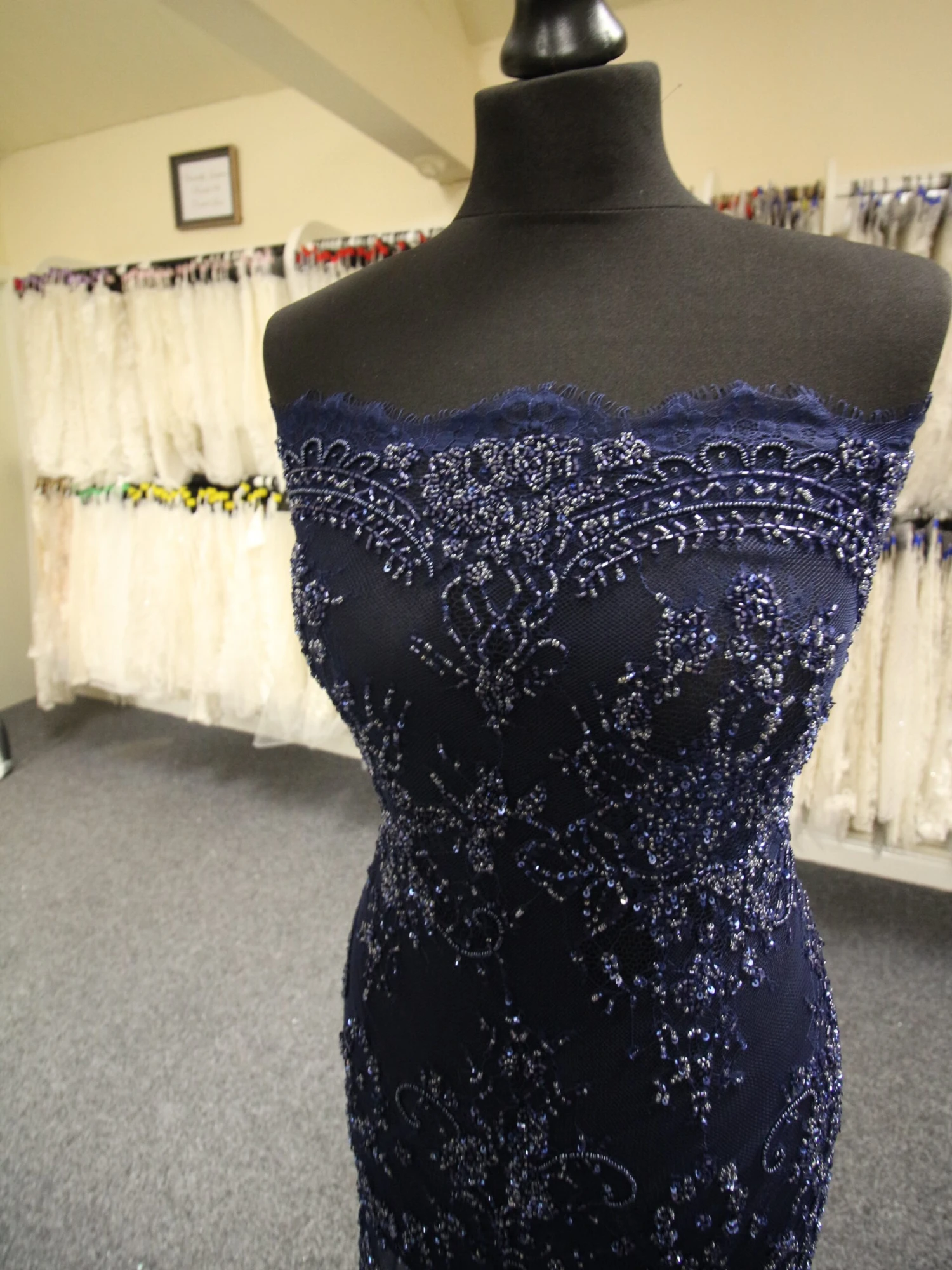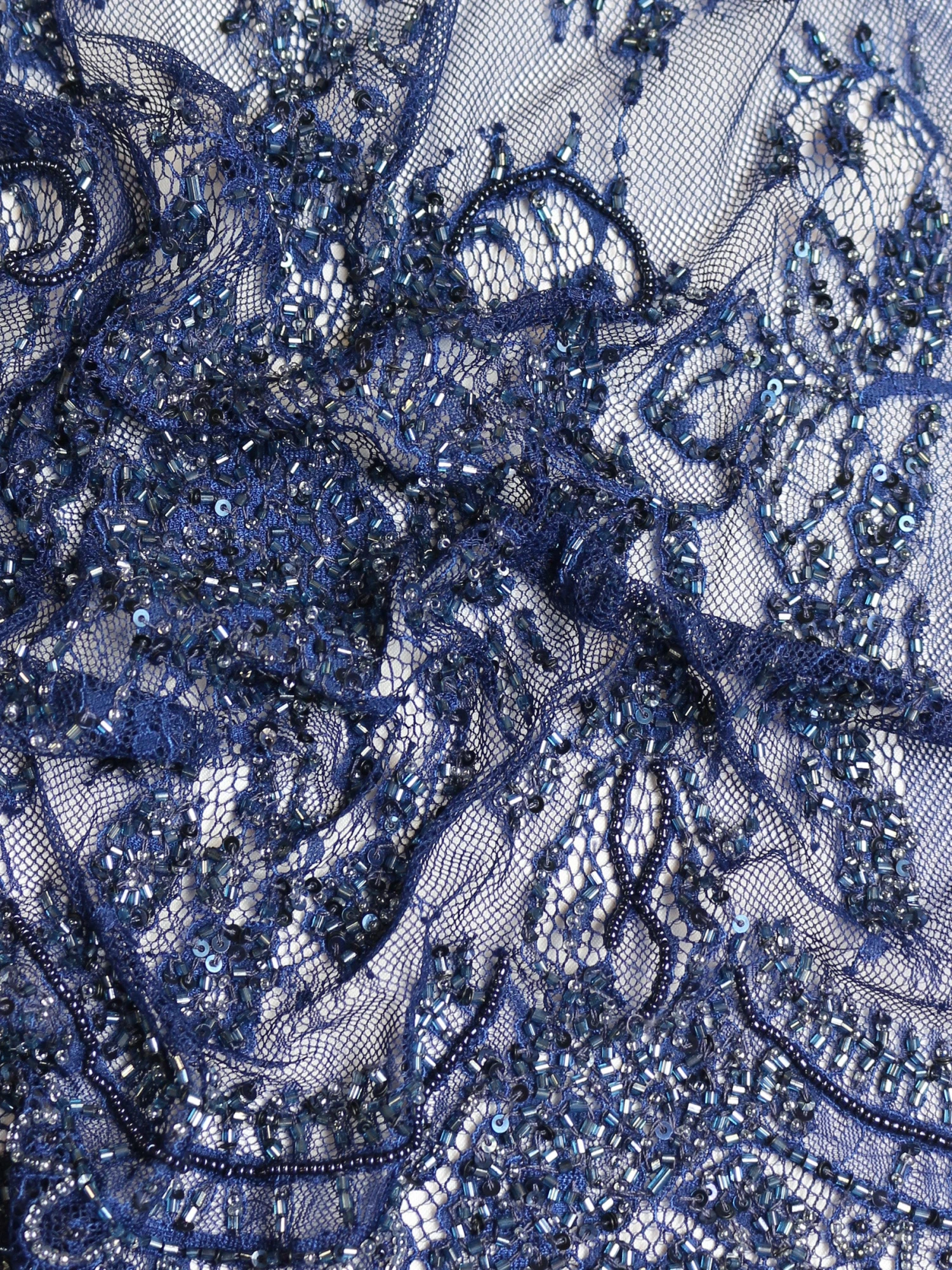 A truly delightful hand beaded blue lace with matching scalloped edges, that measures 140 cm/54″ wide. Â