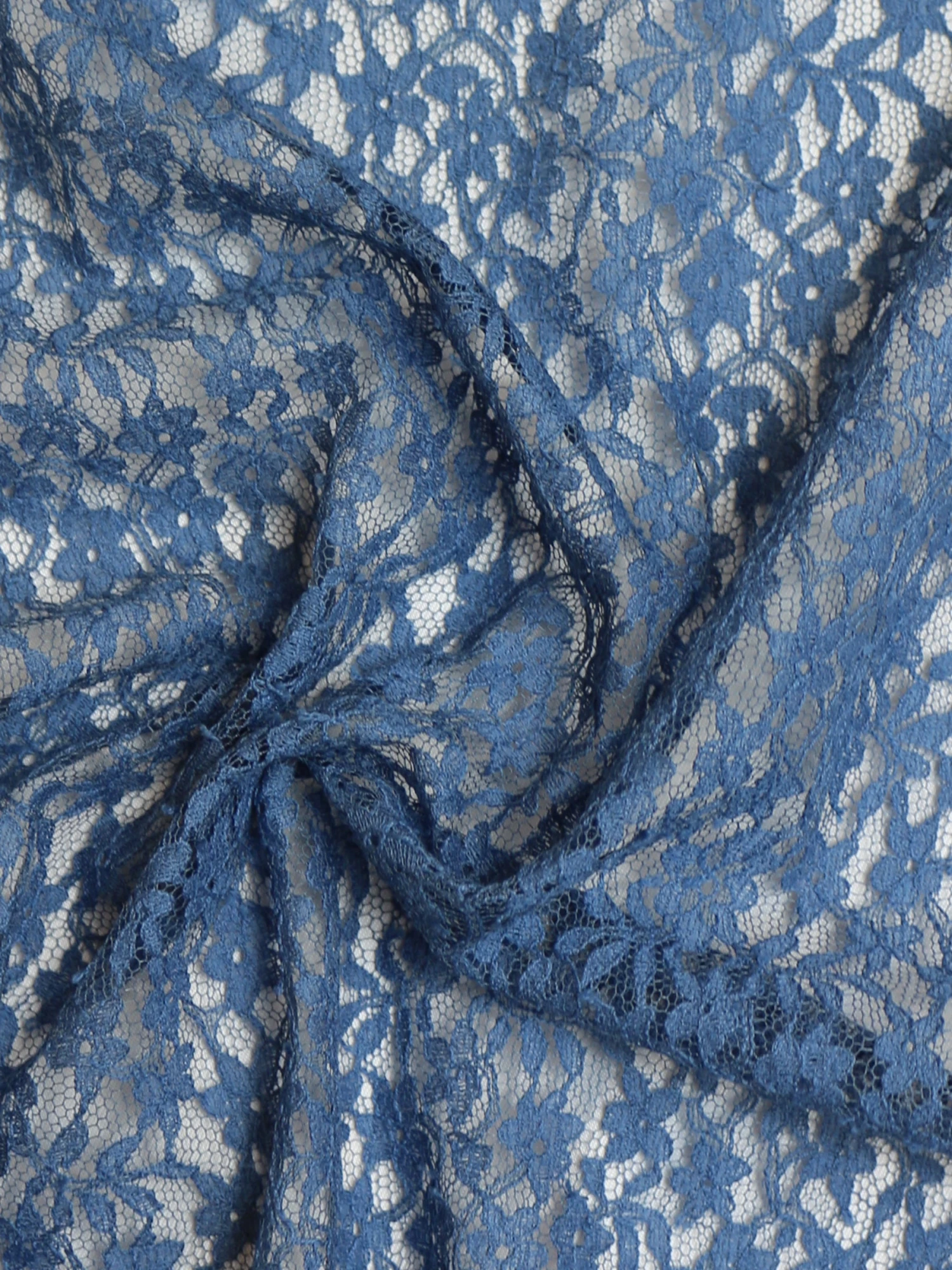 A dainty, elegant and highly feminine blue chantilly lace, that measures 90 cm (35.4″) wide.