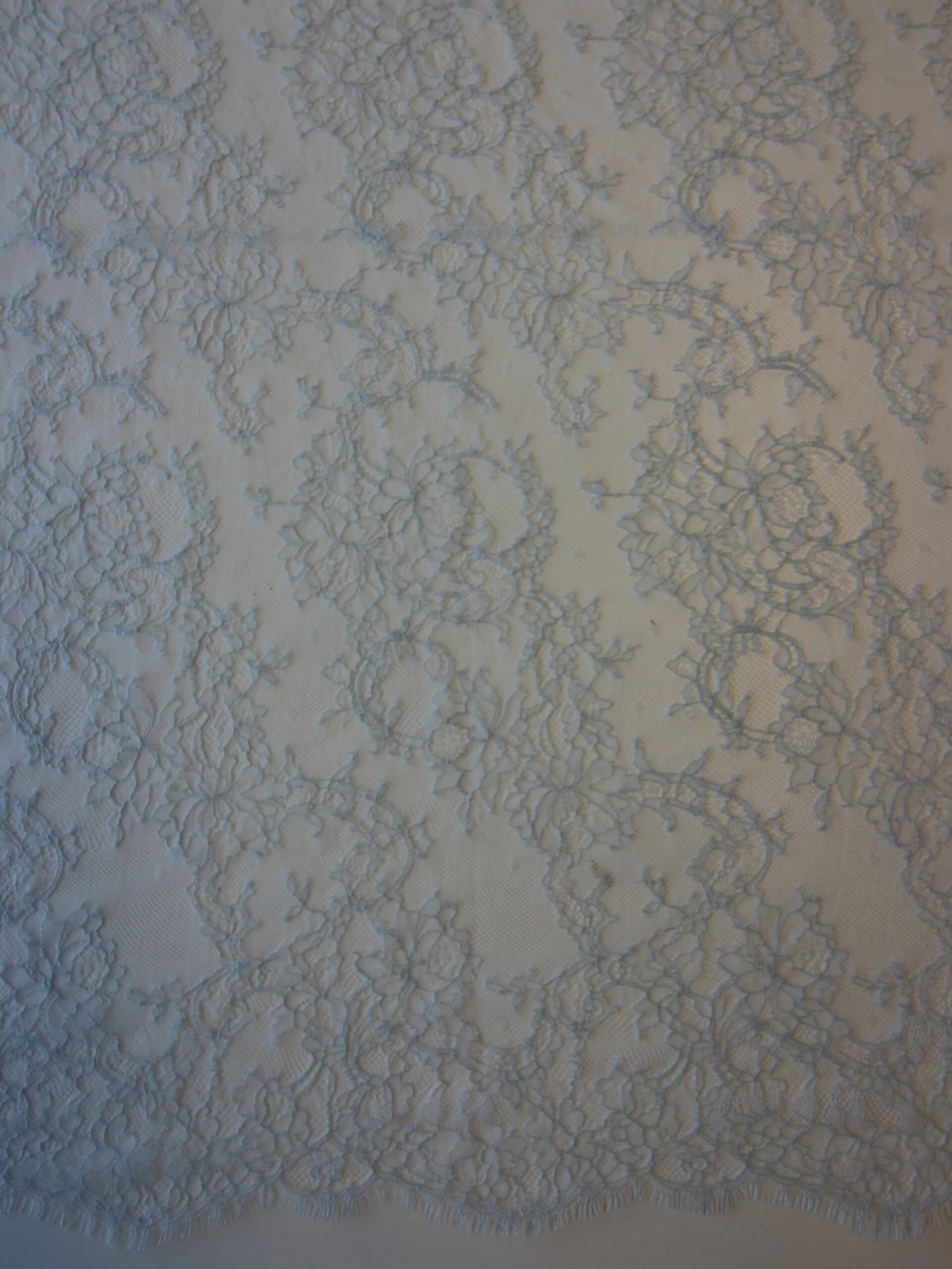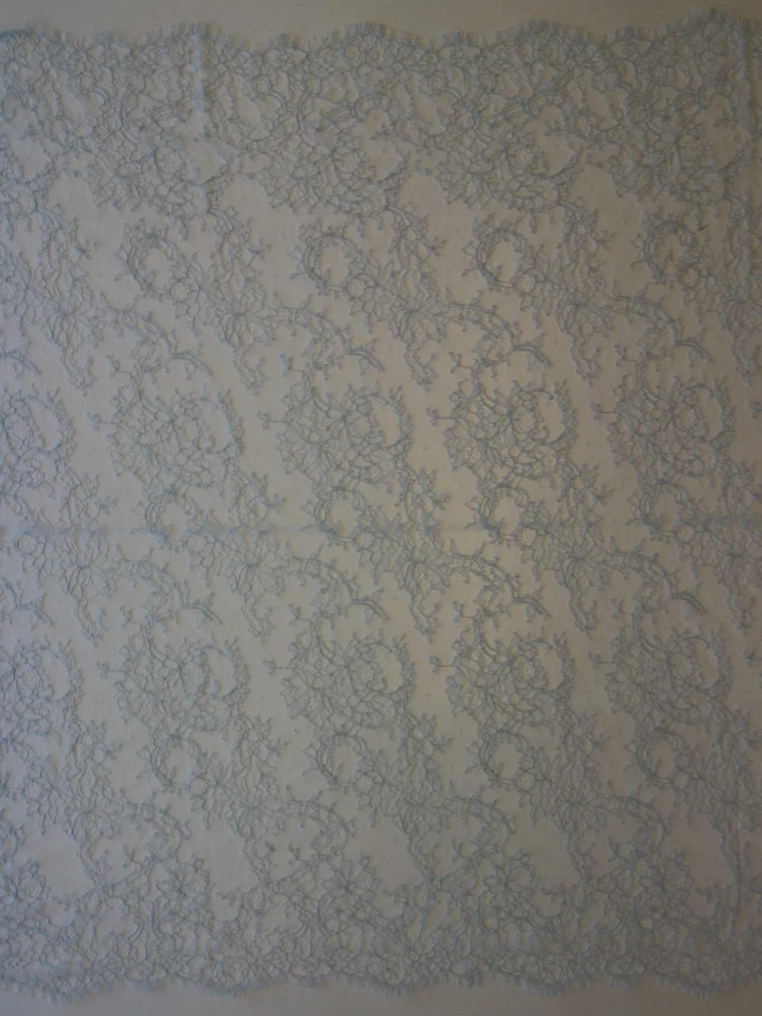 Westlyn is a delicate and lightweight French Chantilly lace available in pale pink, ivory and powder blue. It features a beautiful floral design, showcasing Chantilly shading at its very best.