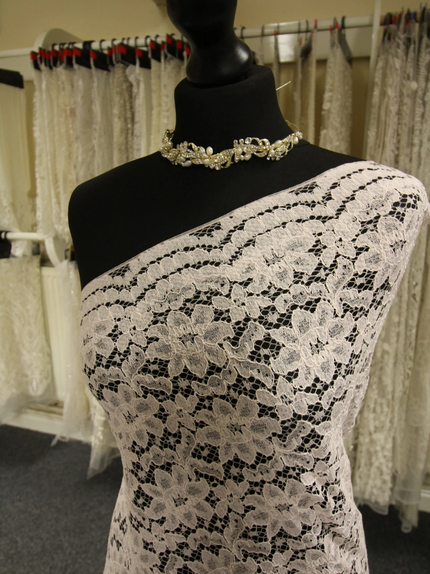 This lace has a soft drapey handle and would be perfect for “Mother of the Bride”, Prom or Bridesmaid dresses.Â