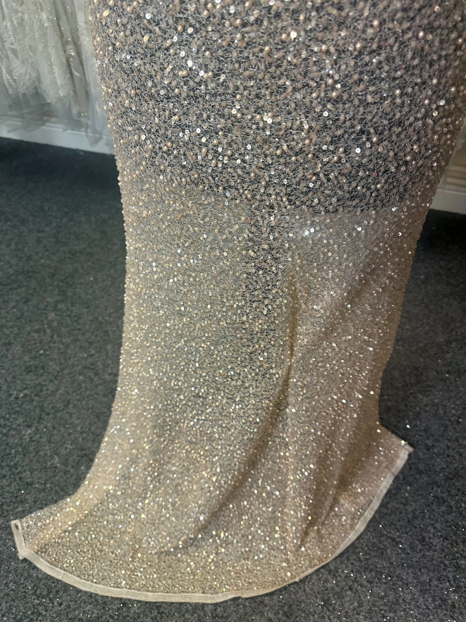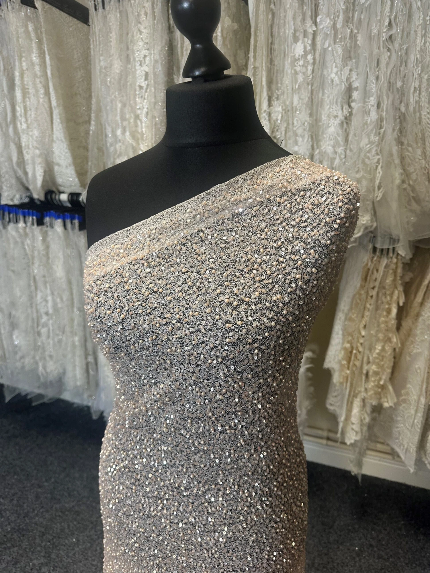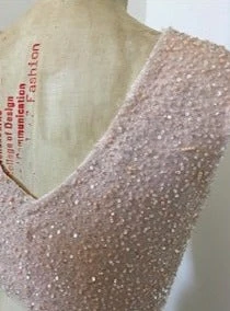 Dripping with pearls and sequins, Zion is a lace full of zeal and sparkle. A lace that measures 135 cm (53″) wide and is a delightful Blush Color. Popular with many clients, especially for mother of the bride or mother of the groom, this lace adds sparkle and colour! A lovely choice.