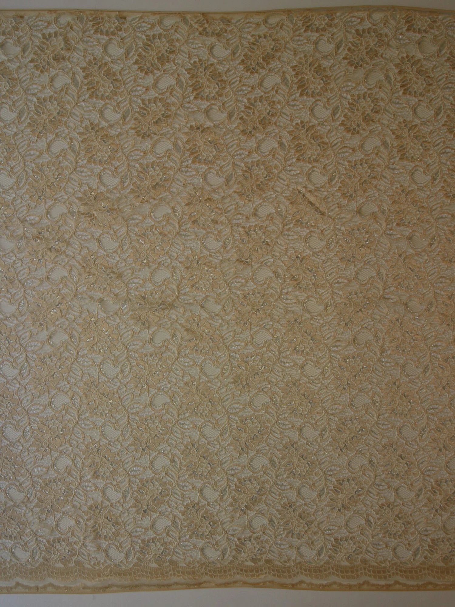 Offered in a great range of colors, Ezra is a superb champagne lace for mother of the bride, occasion wear and evening wear. The base Raschel weave is diverse with closely woven and open woven sections creating the wonderful floral design that is the base of this lace. The flowers and swirls are further highlighted by delicate cording.