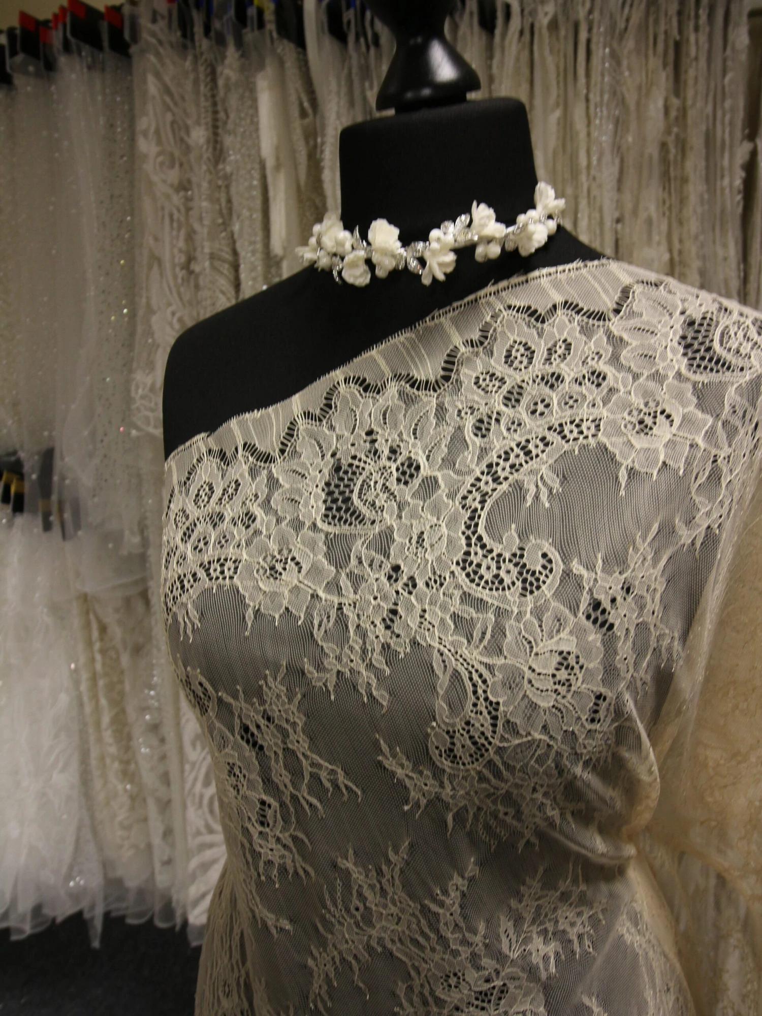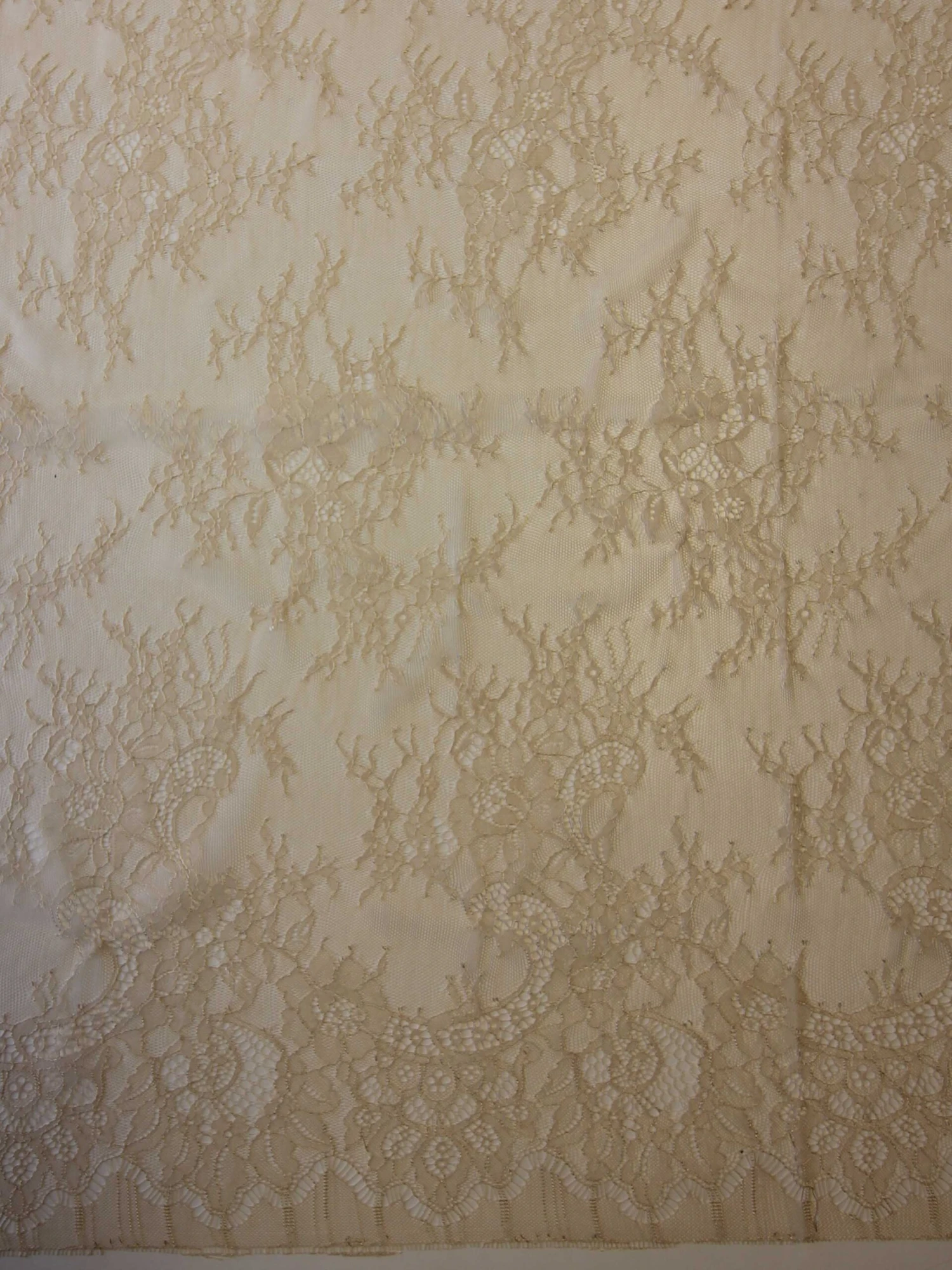 An extremely classic bridal lace in a pretty champagne colour that has dainty detail, which measures 142 cm (56″) wide.Â