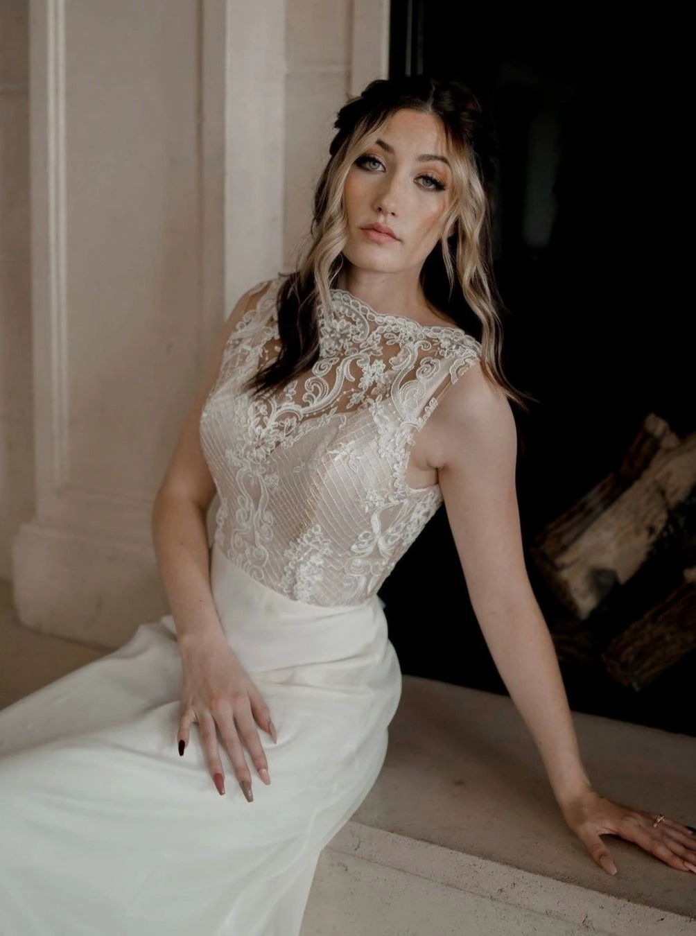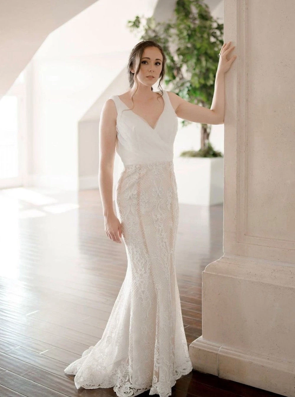 Superb example of current trends interlinked, this ivory lace on a nude tulle base features a compelling design of flowers, baroque style leaves and lattice work yet still retains a floral element with beautiful floral bouquets featuring within the lattice work and around and within the striking leaf design.