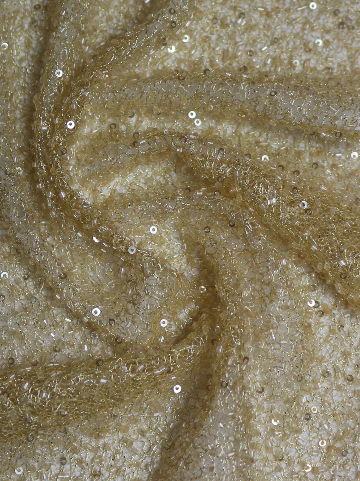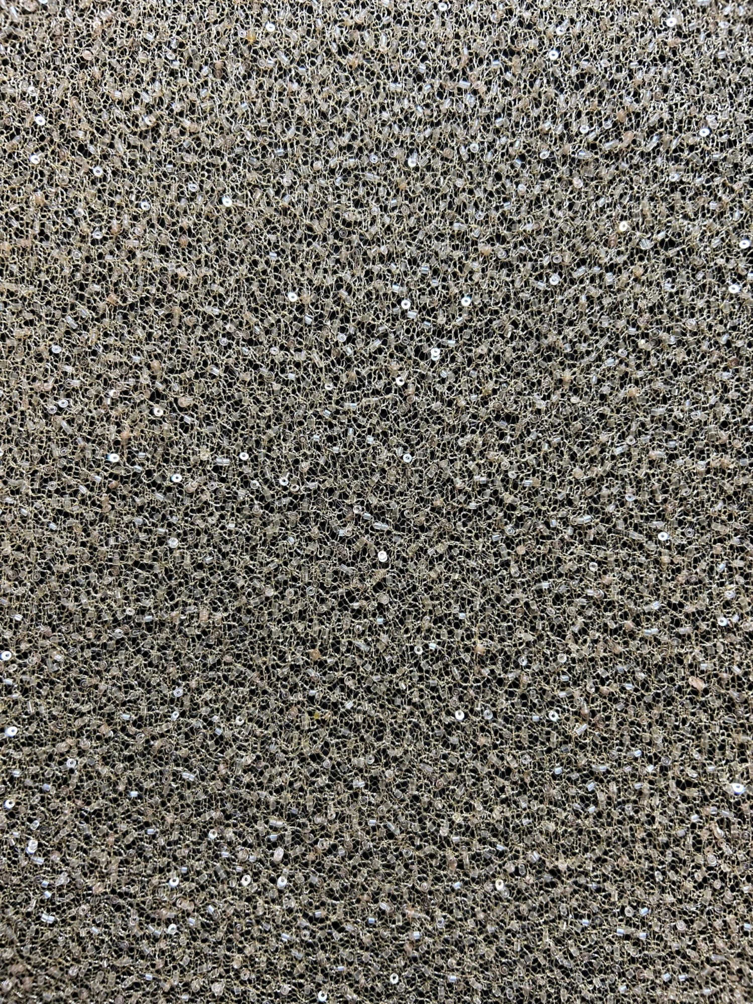 Britte is a hand embroidered lace that has been formed by sequins and beads on a delicate mesh type base fabric. This has a silver thread running throughout, that really is eye catching.