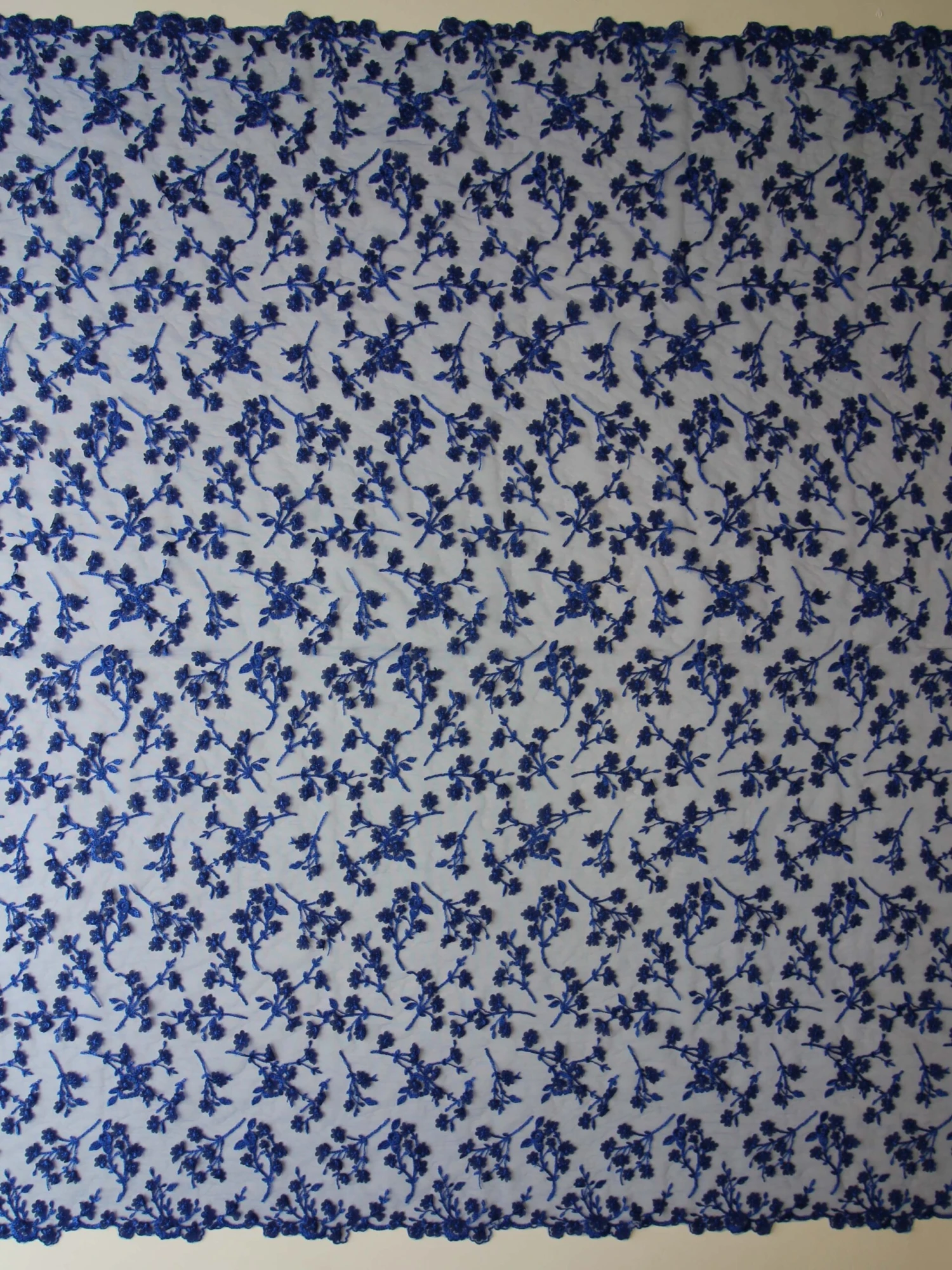 A splendid royal blue embroidery lace with all over flowers and matching edges. This lace is perfect for evening wear or mother of the bride and measures 132 cm (52″) from edge to edge.