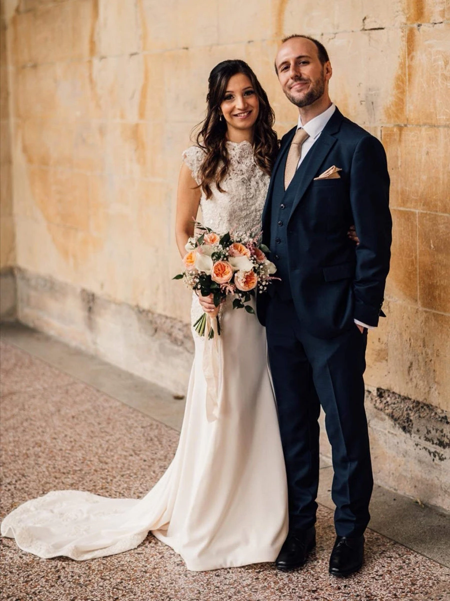 The border consists of a cluster of flowers which are corded. Embroidery is used to create a shading effect whilst beads and sequins are prominent on all flowers. Silver filigree thread is used sparingly. The scallop edge is formed by a series of tight zig zags.