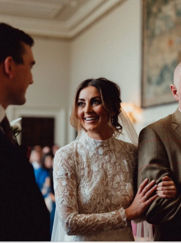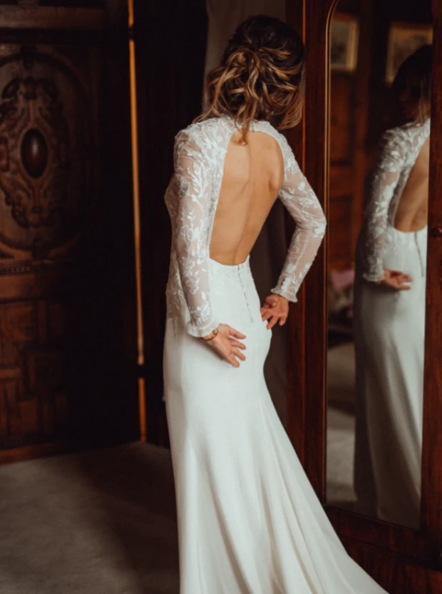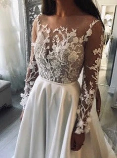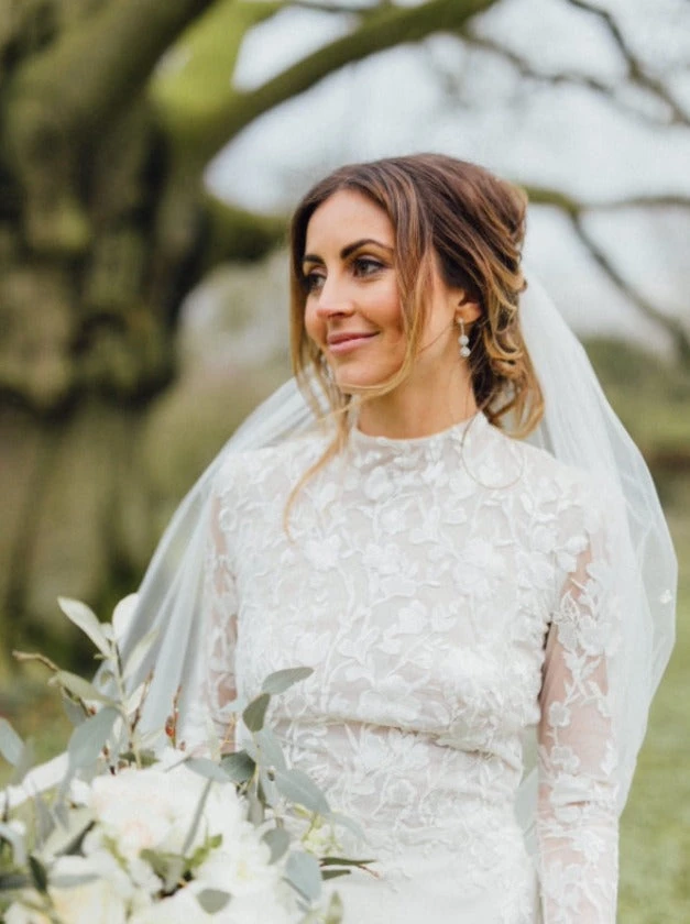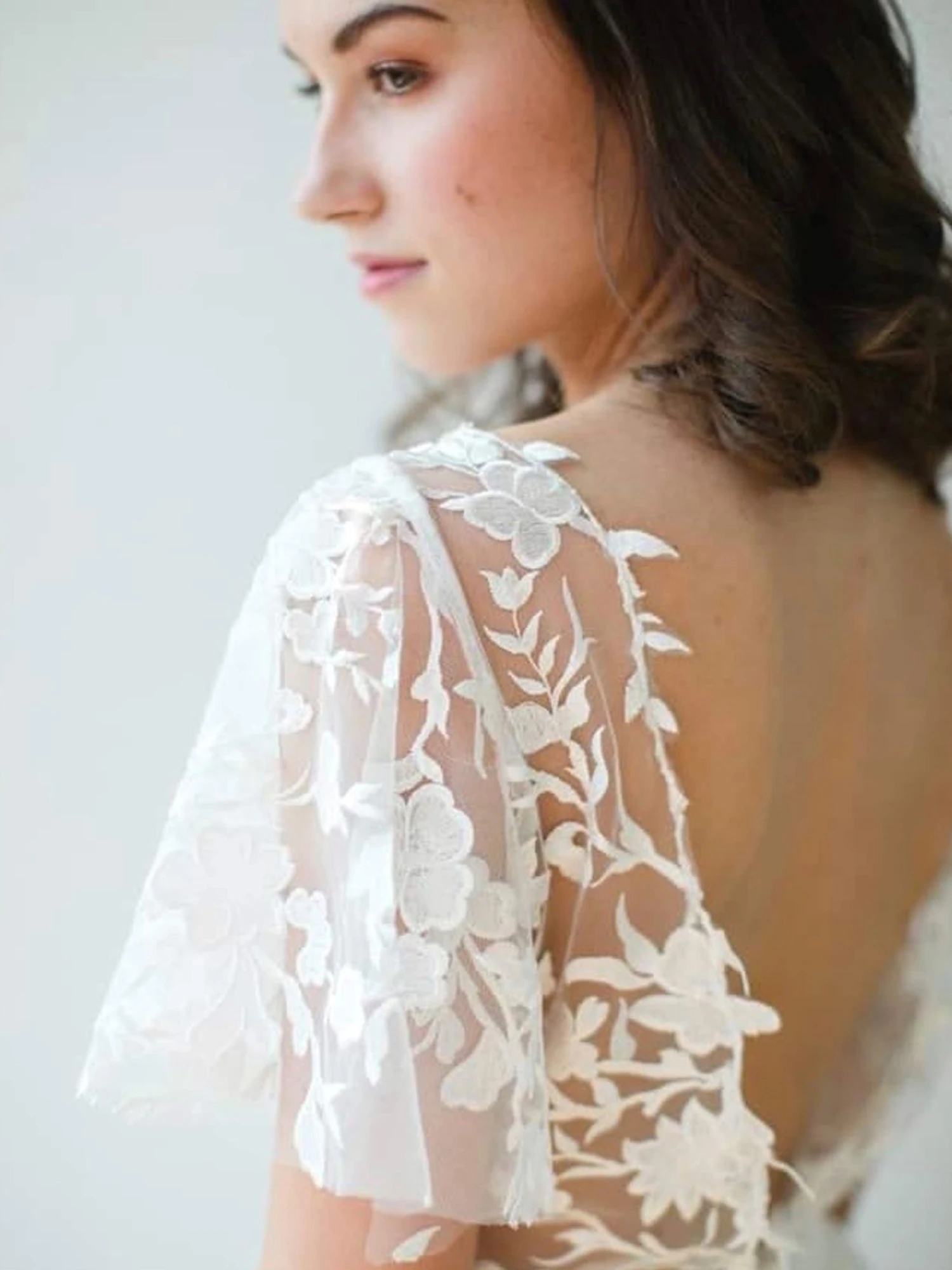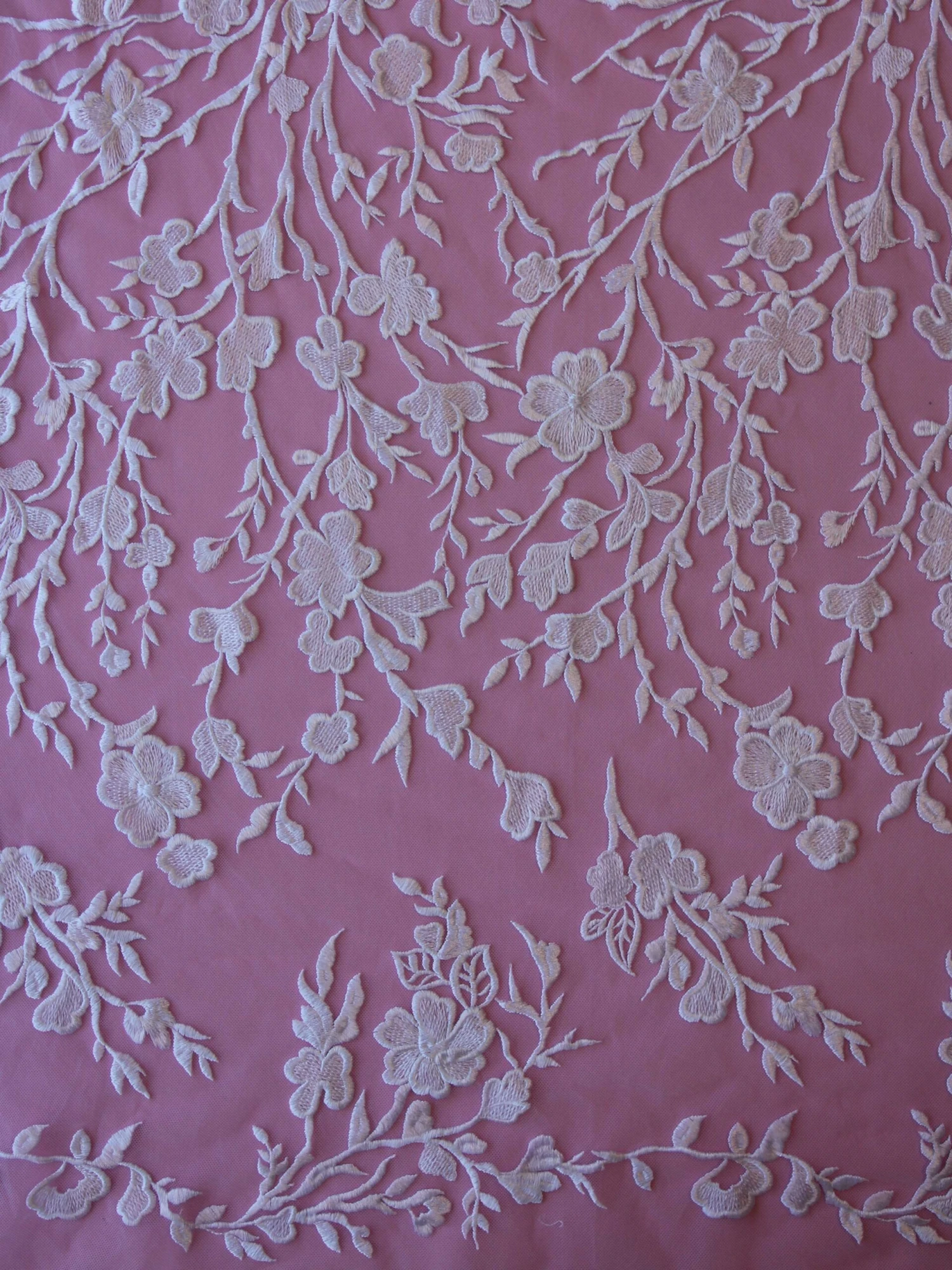 This has proved to be a popular modern, white lightweight bridal lace. Without beaded or sequin embellishment, it features attractive floral motifs set within leaves and vines across the width of the lace. This lace measures 132 cm (52″) wide and has a pattern repeat of 31cms (12.2″). Order a sample to appreciate the handle and quality of this lovely bridal lace which is also offered in ivory