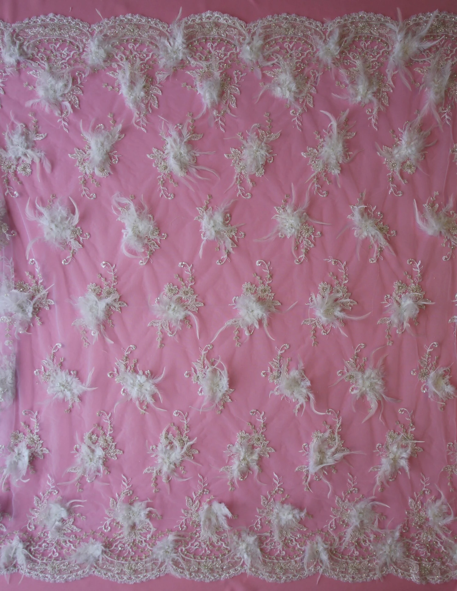 The identical borders of the lace continues the theme of beading and embroidery and are symmetrical, repeating on 20 cm (8″). The lace measures 132 cm (52″) across and has to be seen to be believed.Â