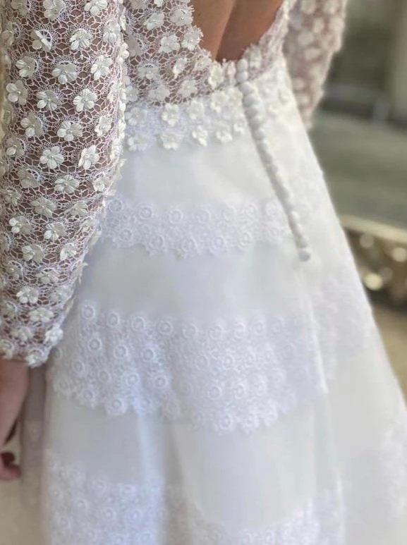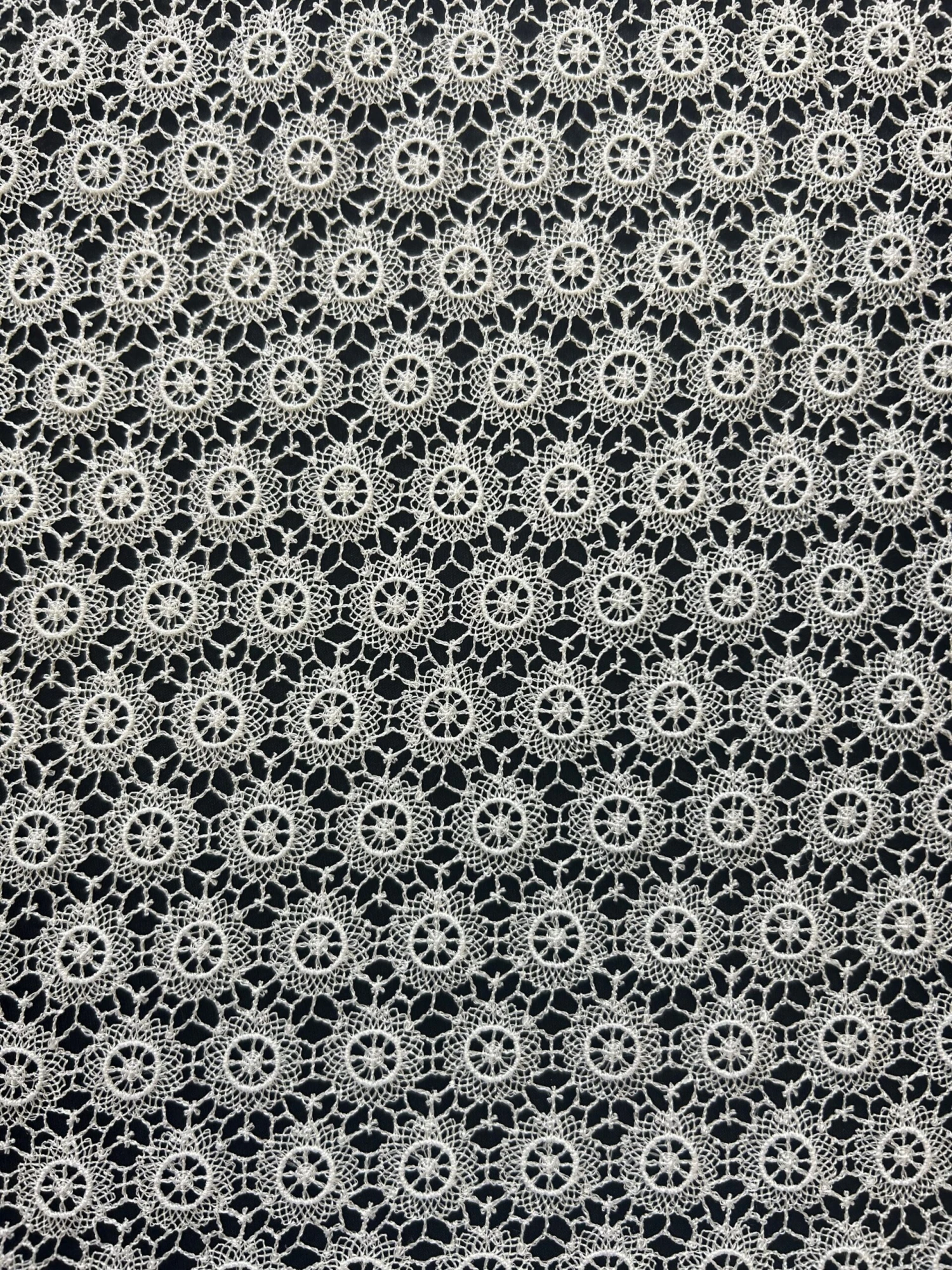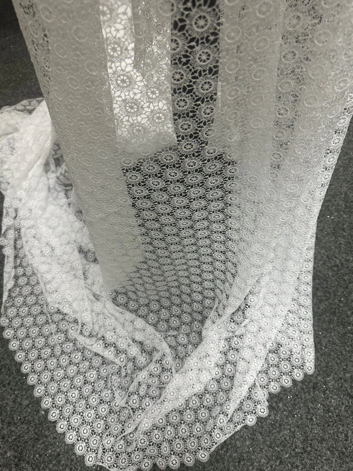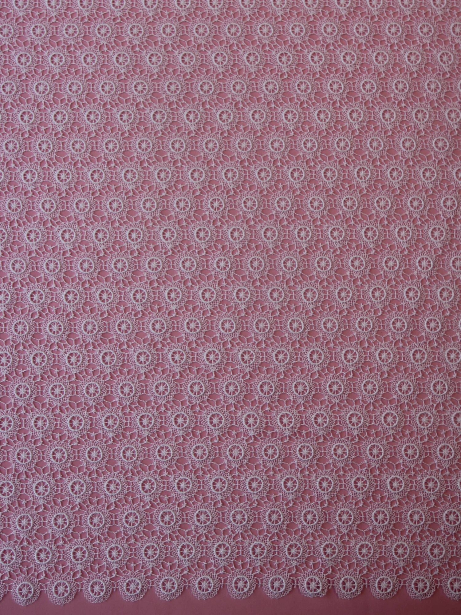 Perfect for a white wedding dress or Christening gown, Communion dress or flower girl dress. This beautiful and dainty and delicate looking Guipure lace is available in both ivory and white, this has matching edges and measures 140 cm (55″) wide. Order your free sample today!