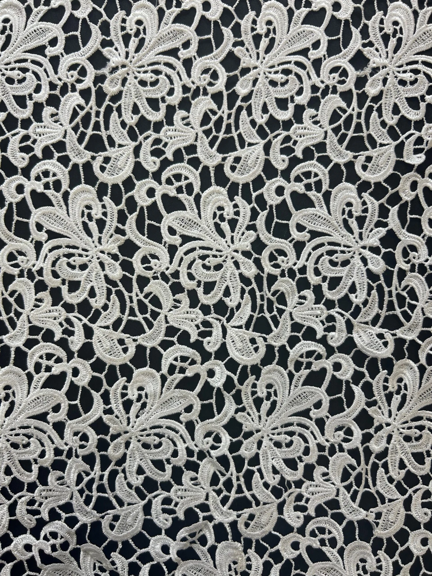 An elegant Guipure lace that has matching edges and a close set pattern.
