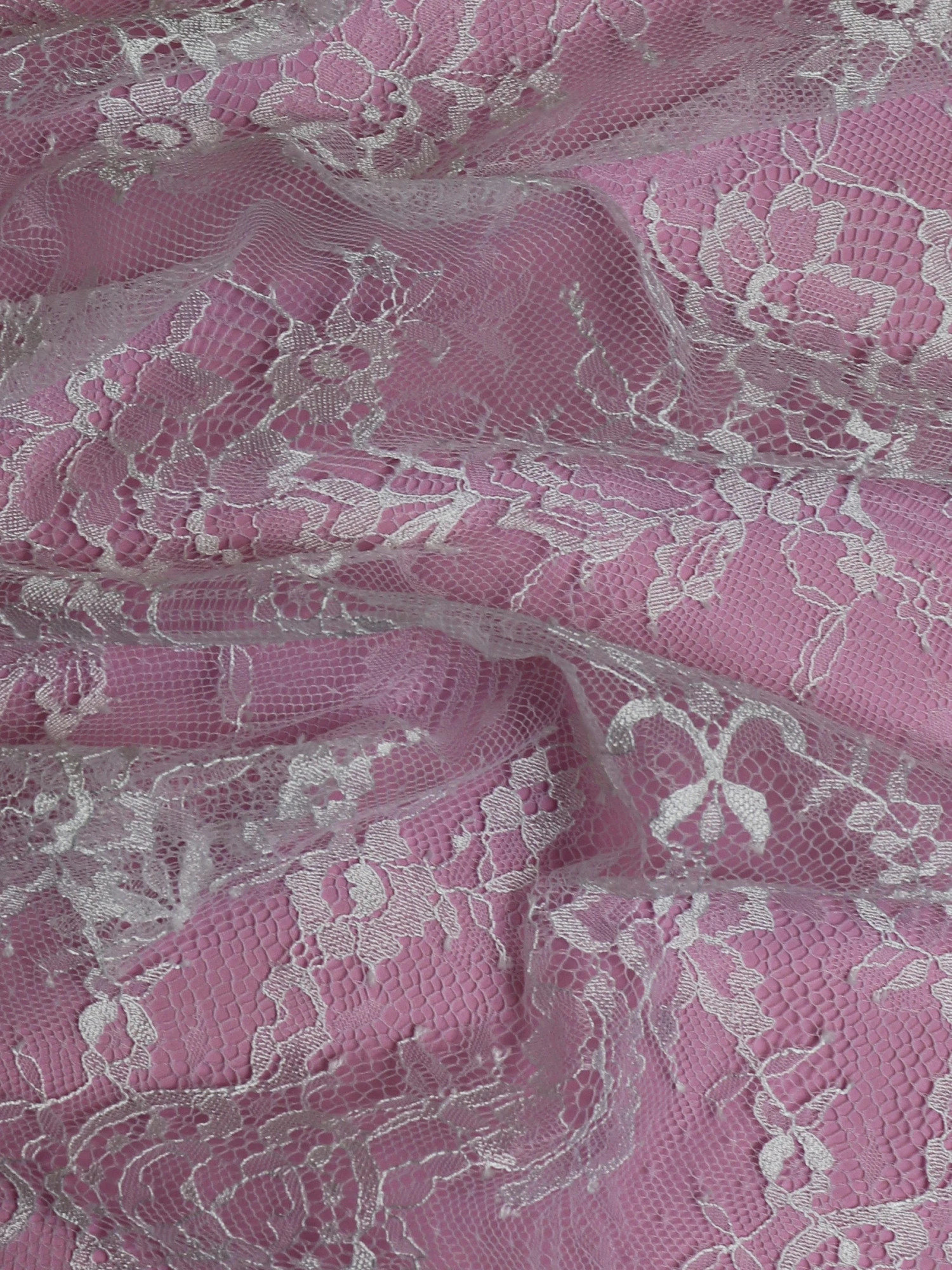 Offering great value, this glamorous and attractive white Raschel bridal lace is a superb option. This lace would also be suitable for Christening gowns and Communion dresses. This lace measures 144 cm (56″) wide and is available from stock for worldwide shipping.